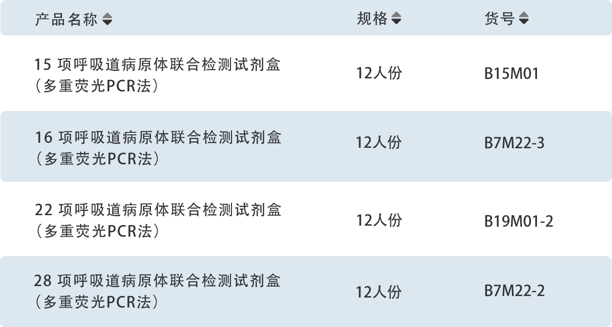根据《全国急性呼吸道传染病哨点监测方案(试行)》要求,艾克韦生物推出多种多重联合检测试剂盒,可覆盖21种呼吸道病原体,40分钟内快速完成高灵敏、高特异性的病原检测。产品支持定制化组合方案与多样化规格开发,兼容主流PCR平台,广泛适用于呼吸道、腹泻、发热、脑炎等多种症候群的病原监测与流行病学分析需求。
